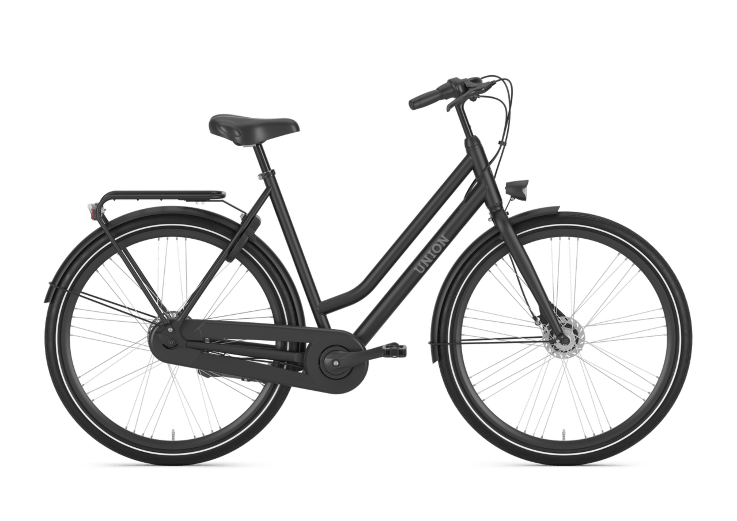 Deze stevige stadsfiets van Union is voorzien van betrouwbare rollerbrake handremmen, batterijverlichting en gesloten kettingkast. Dit maakt deze Union Curb N3 Dames onderhoudsarm.